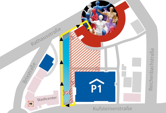 Hinweis Baustelle: Der Weg zum Hintereingang (Hammerweg) ist ausgeschildert. Die Schilder finden Sie beim Parkhaus P1.