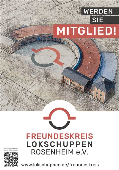 Der Freundeskreis Lokschuppen Rosenheim e.V. fördert nachhaltig Ideen und Ziele des Ausstellungszentrums Lokschuppen. Zeigen Sie Engagement und fördern Sie Kultur - mit einer privaten Mitgliedschaft oder einer Firmenmitgliedschaft.