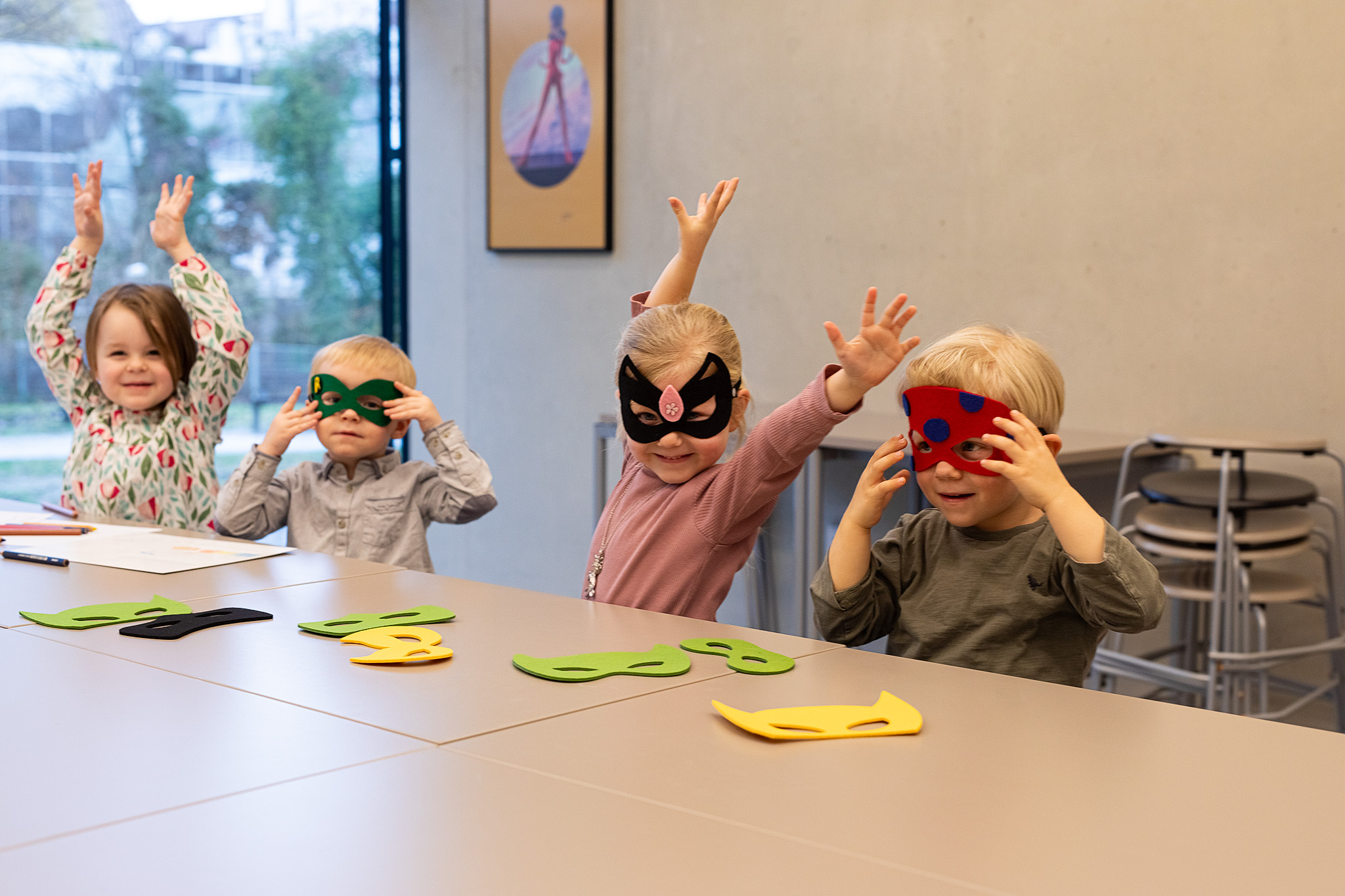 Kinder bauen an einer Magnettafel einen Helden